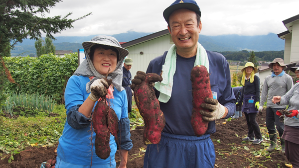 秋野菜の収穫、サツマイモで「きんとん」作り:飯山市百姓塾10月講座[2]